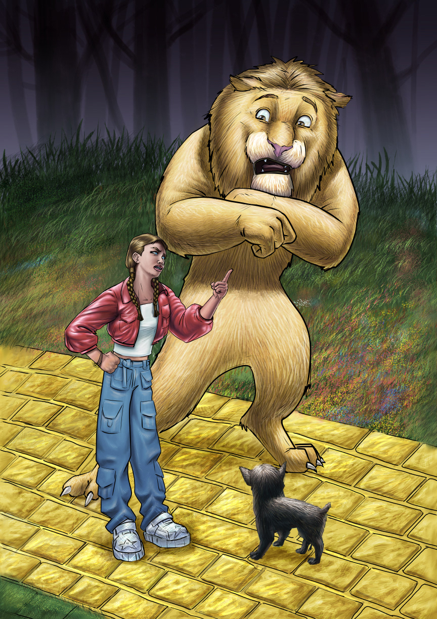 Dorothy scolds The Cowardly Lion